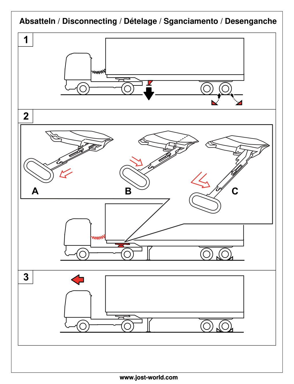 - Zabezpieczyć pojazd silnikowy i naczepę przed samoczynnym przemieszczeniem się (użyć klinów lub hamulca postojowego naczepy);